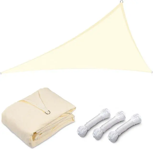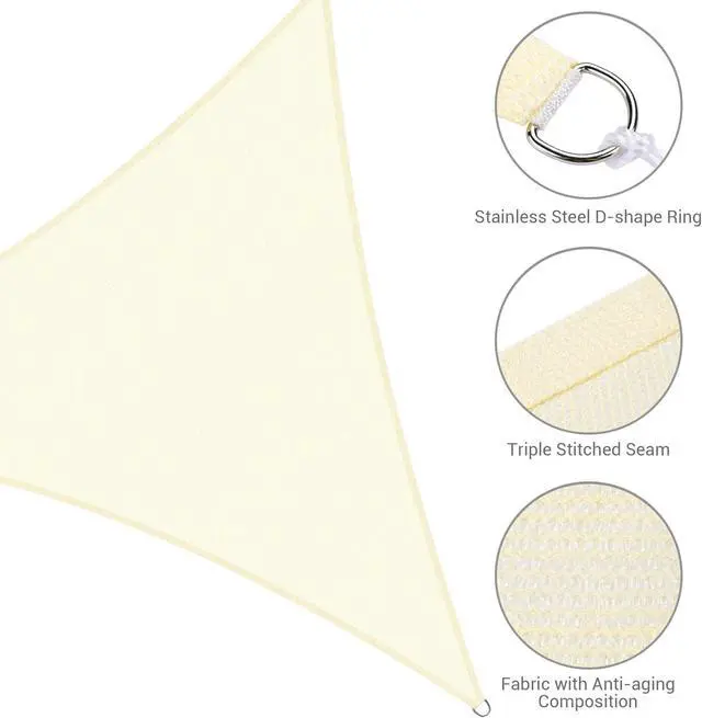 - Durable in Use - Triple stitched seam reinforces the edge to prevent fraying and ripping; Curved triangle shape helps the sail to keep tight; Heavy-duty nylon ropes included; Anti-ager composition added for long time service; 5-year warranty for quality issue