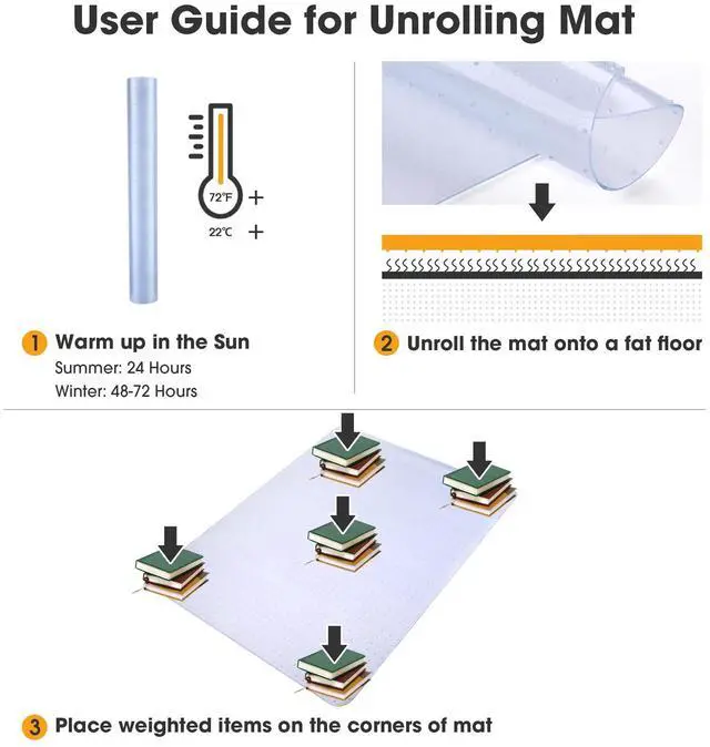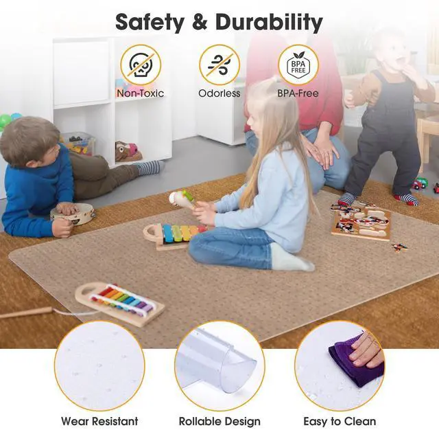 - Durable & Easy to Clean - Made of 1/8" thick durable PVC material, the mat provides wear resistance and stability; water-repellent and dampproof, easy to clean with just a piece of cloth