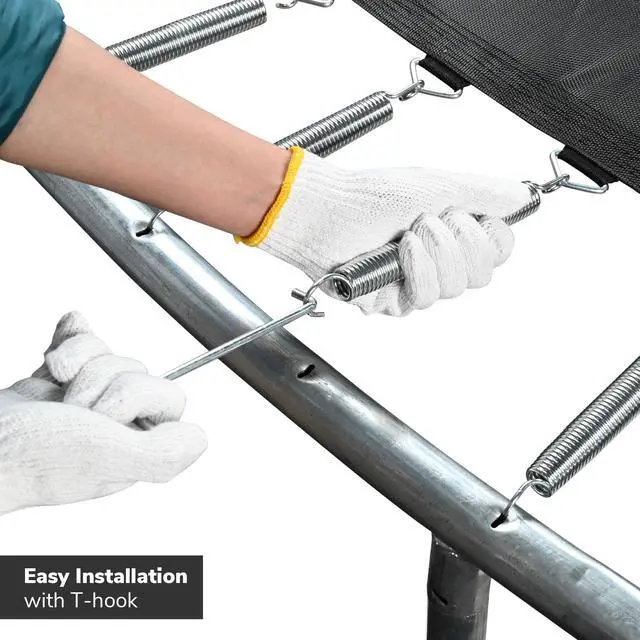 - Easy Installation - With a T-hook enables you to easily and conveniently install the springs to trampoline frame, no need to worry about injury