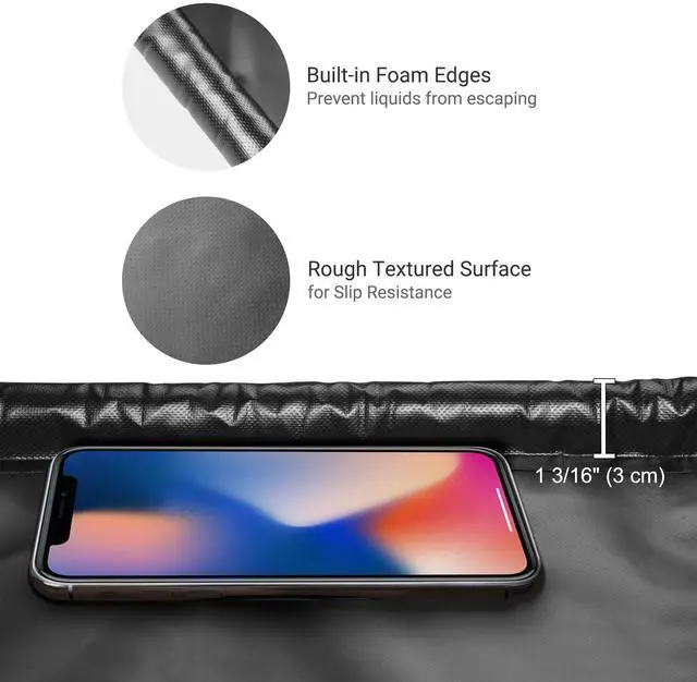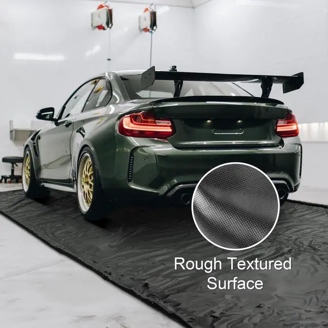 - Durable & Non-Slip - Made of heavy-duty 610g/m2 PVC material, the containment mat is incredibly sturdy to withstand vehicle-grade loads, along with heat-sealed watertight seams for durability and leakage prevention; Features rough textured surface to prevent wheels from slipping