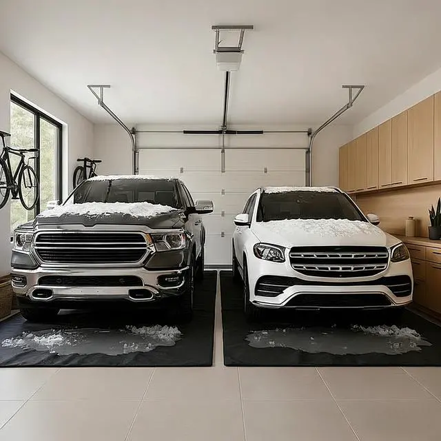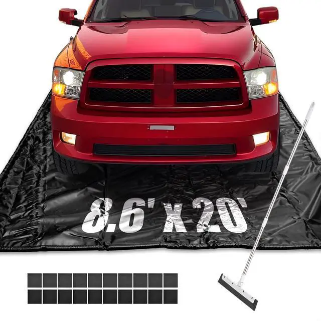 - Garage Floor Protector - This 20' x 8'6" Garage Floor Containment Mat features water-resistant surface and built-in raised foam edges to contain snow, ice, water and mud from cars and trucks and prevent from staining your garage, keeping your garage floor clean and mess free