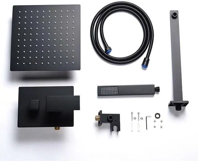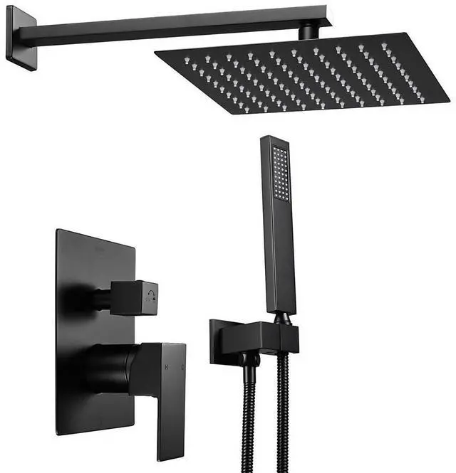 - Concealed Shower Faucet Set - Aquaterior Rain Shower System consists of a 10" square rainfall shower head, a handheld sprayer, a rough-in mixer valve, and a stainless-steel water hose, and boasts a sleek and concealed design for saving space and matching any modern style bathroom