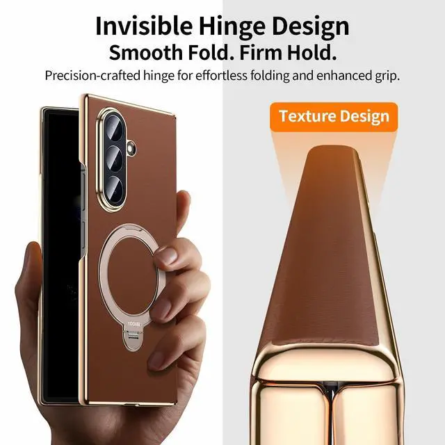for Galaxy Z Fold 7 Case Luxury Leather with Screen Protector [Hinge Protection],Fit for Magsafe,Magnetic Kickstand & Ring Holder for Samsung Zfold 7 Case Brown