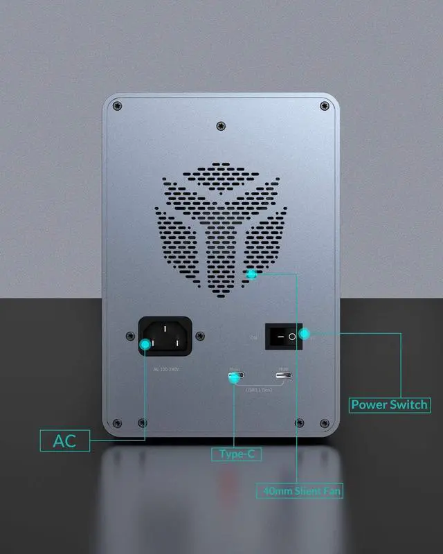 | HDD/SSD Capacity | Support 2.5"/3.5" SATA HDD/SSD. Support up to 18TB, 90TB in total. |