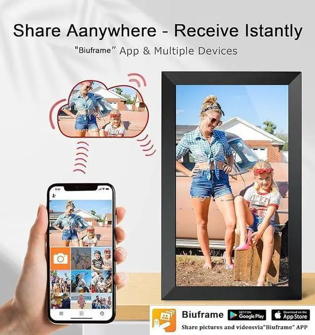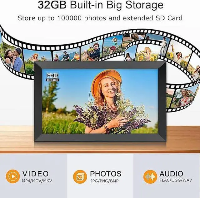 YOUYU 15.6 inch large digital picture frame come with a built-in 32GB memory that enables you to share thousands of photos and videos with ZERO HIDDEN FEES AND SUBSCRIPTIONS FEES.
