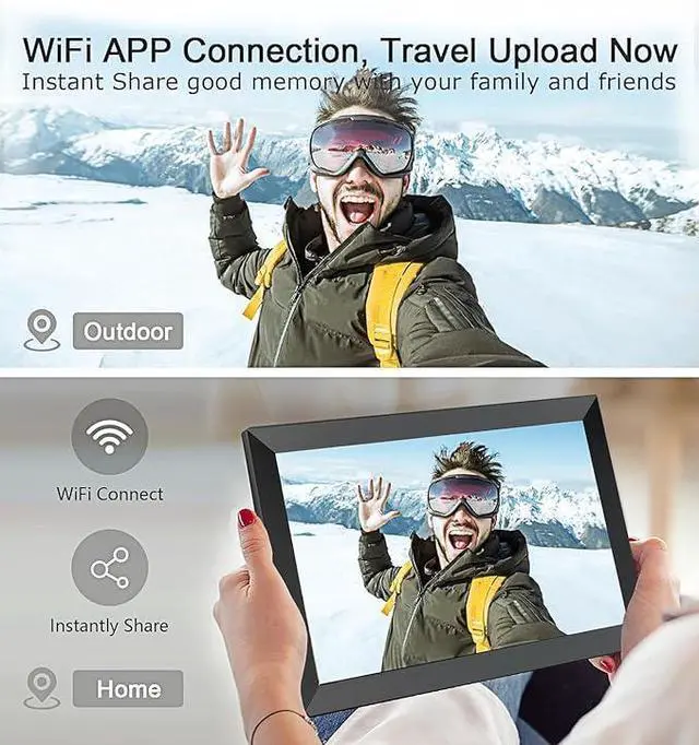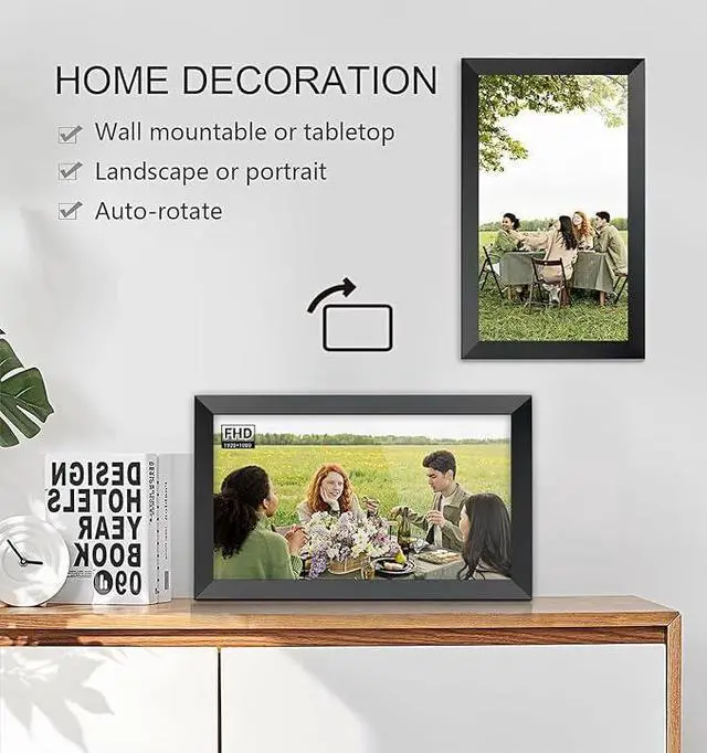 YOUYU 15.6" digital photo frame WiFi features Auto-Rotate function that allows the photos to adjust the directions automatically to fit the frame in a more ornamental way. Your photos will always be right-side-up no matter how you place the frame.