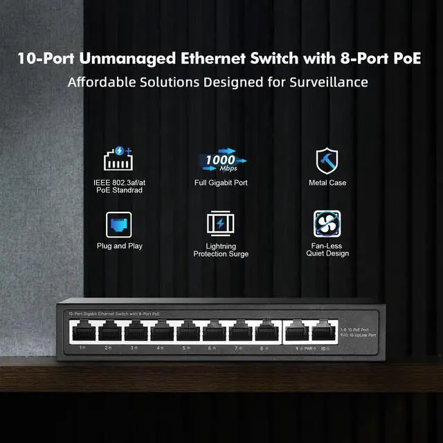 | Product Name | 10-Port Gigabit Ethernet Switch with 8-Port PoE |