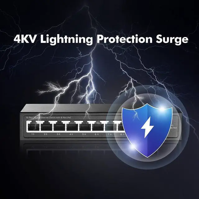 The switch features with 4KV surge protection, can adapt to harsh outdoor environment and ensure the reliability of the uninterrupted network system.