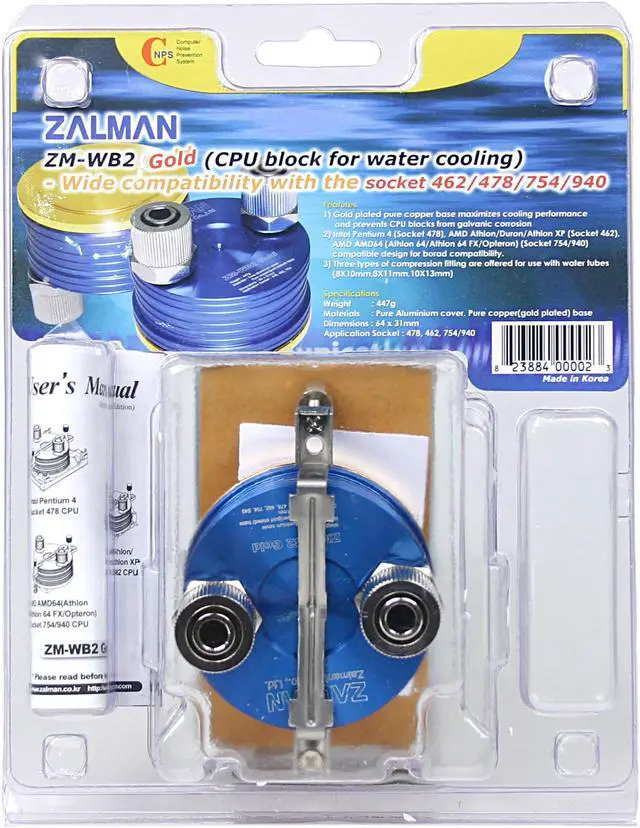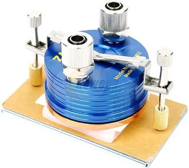 | Features | . Pure copper base ensures excellent heat dissipation, and anodized aluminum top prevents corrosion. 2. Intel Pentium 4 (Socket 478), AMD Athlon/Duron/Athlon XP (Socket 462), Athlon 64 (Socket 754) compatible design for borad compatibility. 3. Three types of compression fitting are offered for use with water tubes (8X10mm,8X11mm,10X13mm) |