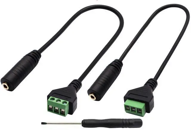 No soldering required, easy to use When a lack of time or tools prevents a standard 3.5mm Stereo Audio connection, this connector steps in to fill the void. With only a wire stripper and a screwdriver, this 3.5mm Stereo Audio to screw terminals connector cable will save time and hassle for installers