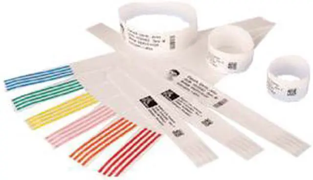 Direct thermal white polypropylene wristband with a permanent acrylic adhesive paper tab for securement. Features tamper-evident slits. Available in several lengths and widths for adults, children and infants, as well as colors.