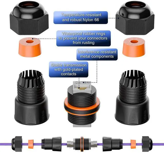 The housing is made from temperature-insensitive and shock-resistant PA66 material that can withstand complex outdoor environments to protect rj45 connectors from moisture and aging.