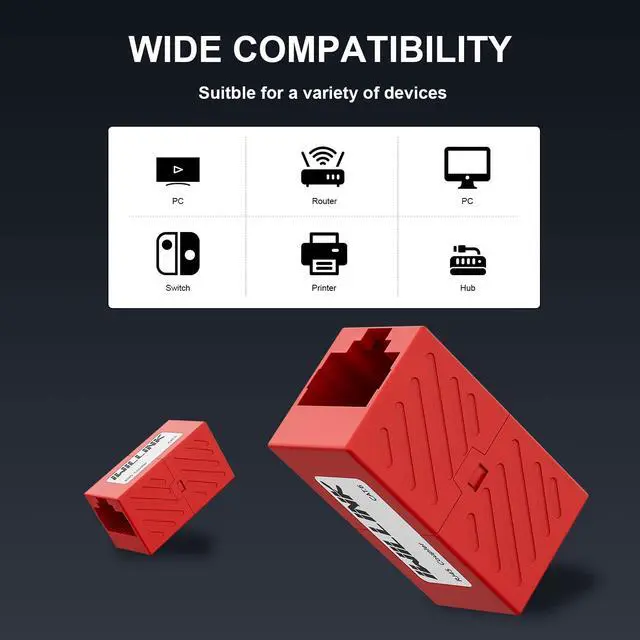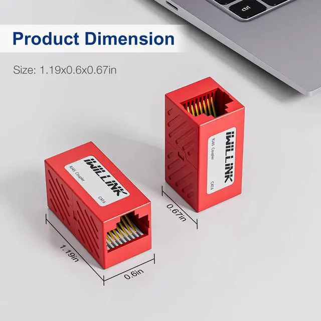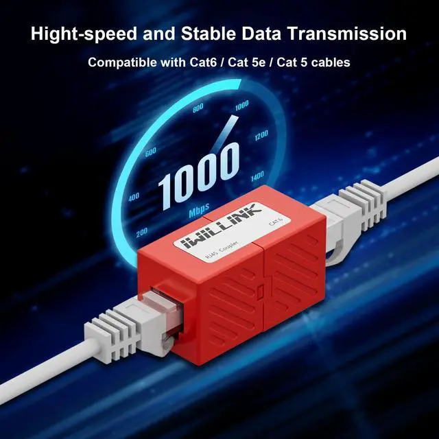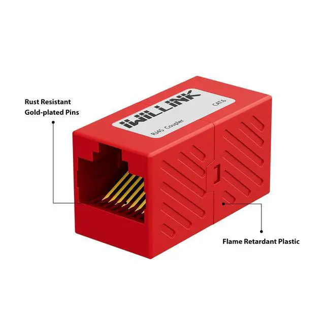 The iwillink Cat6 RJ45 In-Line Coupler requires no tools to connect RJ45 Ethernet patch cables. This coupler is an ideal solution for extending existing Cat5, Cat5e, or Cat6 cables that cannot be accessed or relocated. It is very useful for quickly testing and troubleshooting equipment problems.