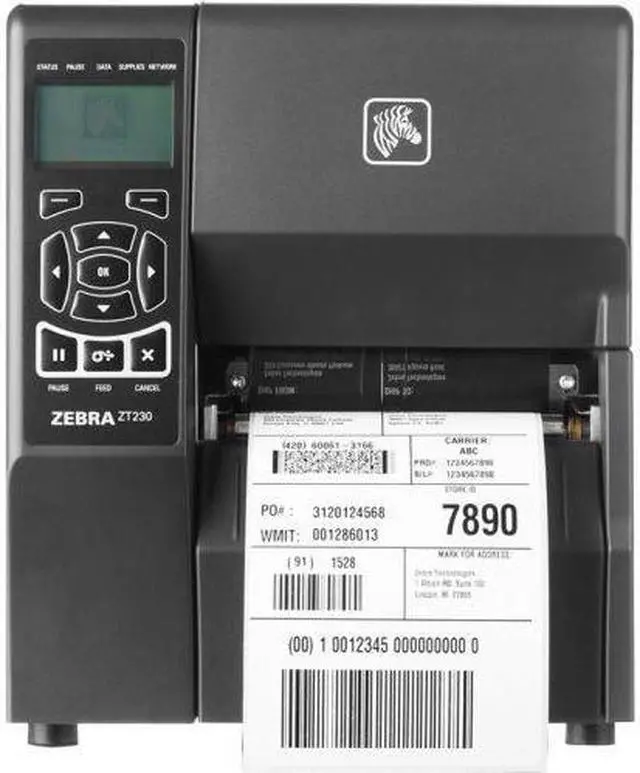 Zebra ZT230 4” Industrial Thermal Transfer Label Printer, LCD, 300 dpi, Serial, USB, Int 10/100, Liner Take Up w/ Peel, ZPL, XML Support, US Cord - ZT23043-T31200FZ