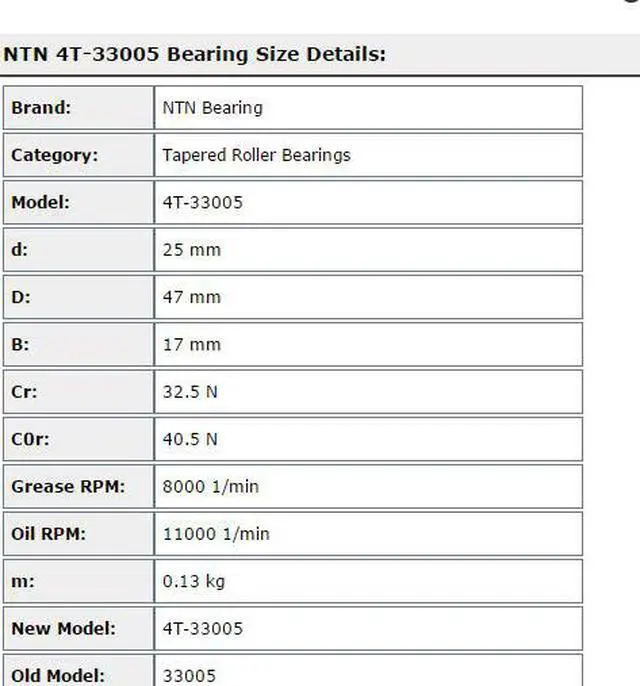 NTN 4T-33005 Tapered Roller Bearing 25x47x17mm