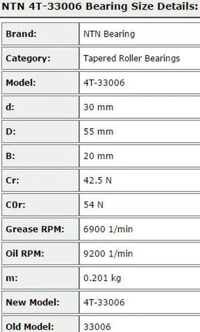 NTN 4T-33006 Tapered Roller Bearing 30x55x20mm