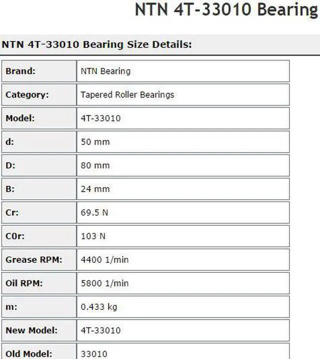 NTN 4T-33010 Tapered Roller Bearing 50x80x24mm