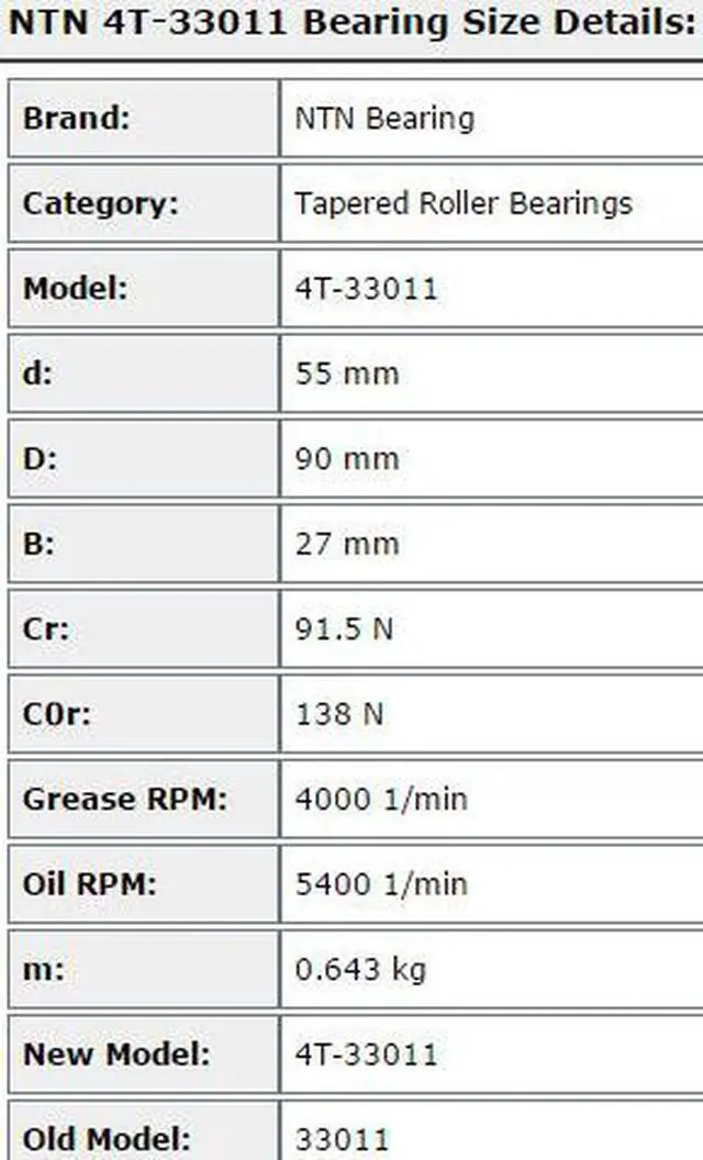 NTN 4T-33011 Tapered Roller Bearing 55x90x27mm