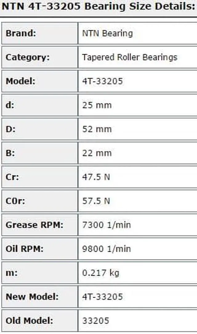 NTN 4T-33205 Tapered Roller Bearing 25x52x22mm