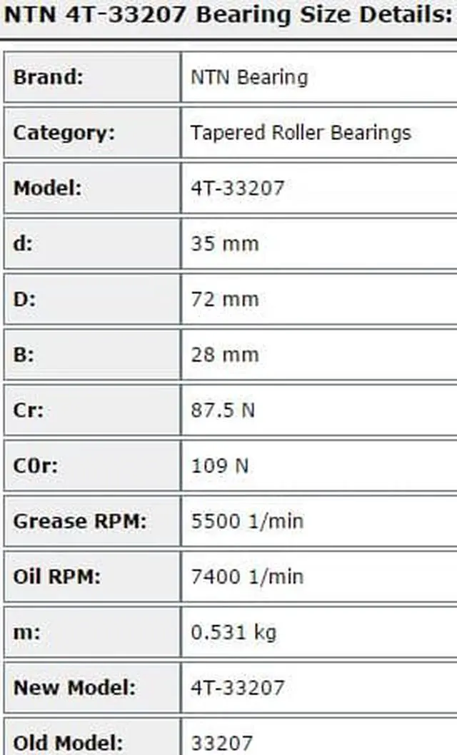 NTN 4T-33207 Tapered Roller Bearing 35x72x28mm