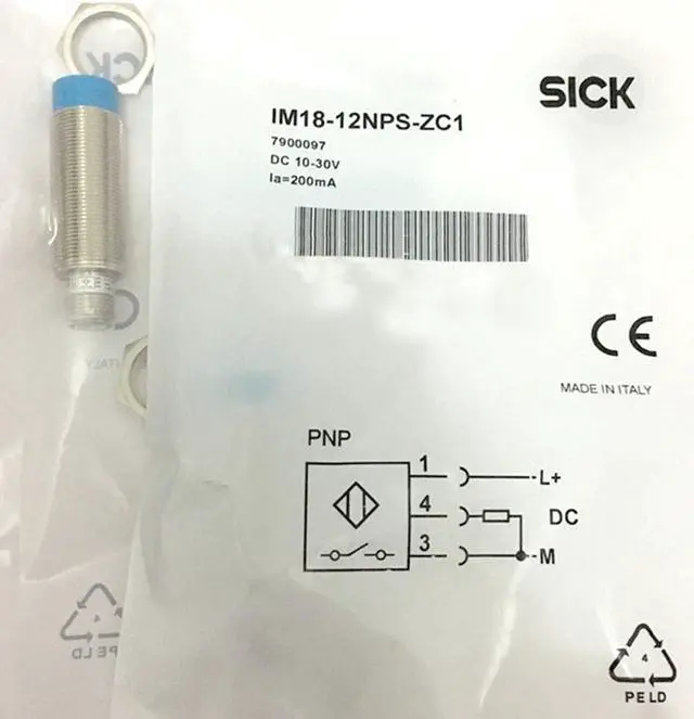 SICK IM18-08BPS-ZC1 Proximity Switch, PNP, New Features Housing Cylindrical thread design Housing Standard Thread size M18 x 1 Diameter Ø 18 mm Sensing range Sn 8 mm Installation type Flush Switching frequency 300 Hz Connection type Male connector M12, 4-pin Switching output PNP Output function NO Electrical wiring DC 3-wire Enclosure rating IP67 1) Mechanics/electronics Supply voltage 10 V DC... 30 V DC Ripple = 10 % Voltage drop = 1 V 1) Current consumption 10 mA 2) Time delay before availability = 100 ms Hysteresis 2 %... 15 % Reproducibility = 5 % 3) 4) Temperature drift (of Sr) ± 10 % EMC According to EN 60947-5-2 Continuous current Ia = 400 mA Short-circuit protection? Reverse polarity protection? Power-up pulse protection? Shock and vibration resistance 30 g, 11 ms / 10.