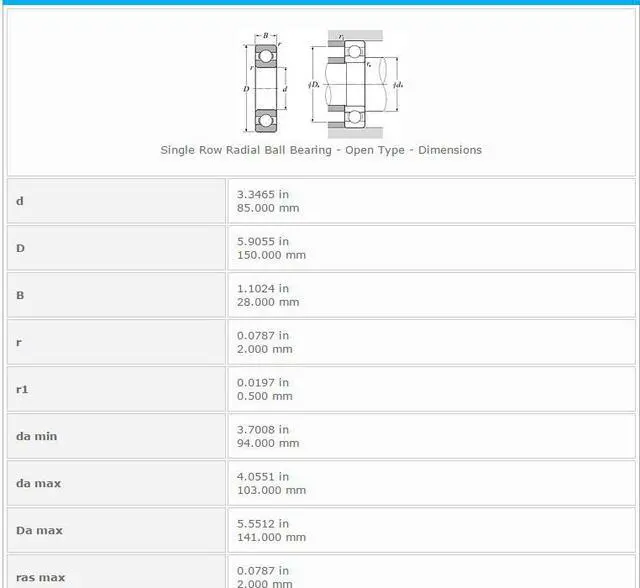 NTN 6217 Single Row Radial Ball Bearing - Open Type 85x150x28mm