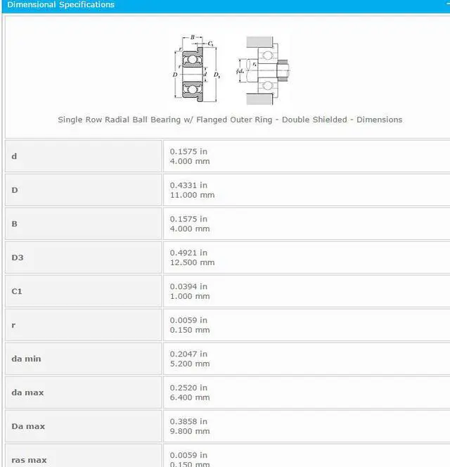 NTN FL694ZZ Single Row Radial Ball Bearing w/ Flanged Outer Ring 4x11x4mm
