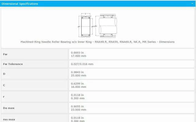 NTN NK 17/16R Needle Roller Bearing 17x25x16mm