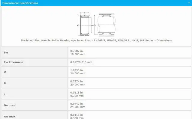 NTN NK 18/20R Needle Roller Bearing 18x26x20mm