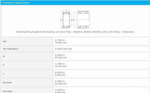NTN NK 70/35R Needle Roller Bearing 70x85x35mm