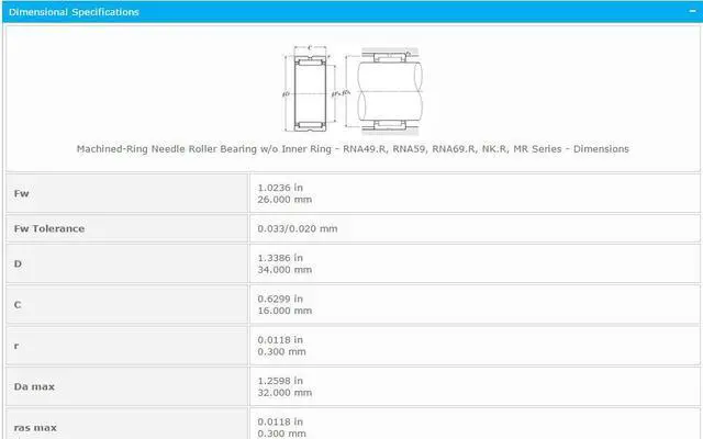 NTN NK26/16 R Needle Roller Bearing 26x34x16mm