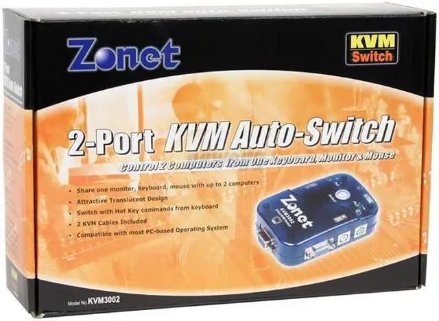 | Features | 2 port KVM Switch is compact and portable Supports Microsoft Intellimouse R, Logitech Net Mouse R, etc... Supports DOS, Win3.X, Win95/98/98SE/2000/ME/XP, WINnT, Netware, Unix and Linux Hot Plug - Add or Remove Connected PCs for Maintenance Without powering down KVM switch or PCs No Software Required Auto Scan Mode for Monitoring PCs Keyboard Status restored when switching PCs LED Display for Easy Status Monitoring Buzzer sound for switching port confirmation |