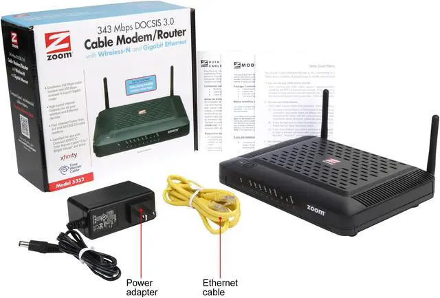 | Package Contents | DOCSIS 3.0/2.0/1.1 cable modem Power adapter Ethernet cable Quick Start Flyer |