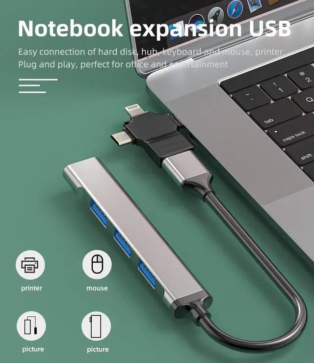 3-in-1 Design3 interfaces for you! iOS Port + Micro USB Standard Port + Type C New style port. Easy to switch between iOS Port & Micro USB & Type C.Suitable for all Apple's USB-C interface devices such as iPhone 15, iPad 10, Air4, Air5, mini6, (2018/2019/2021/2022/2023Pro 11/12.9 inch)